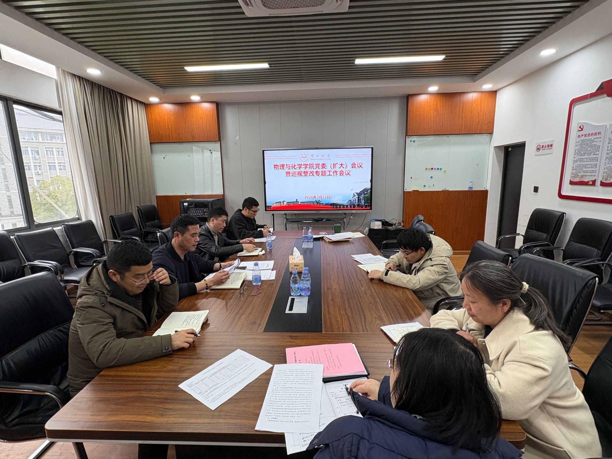 3月17日,物理与化学学院召开党委会(扩大)会议暨巡视整改专题工作会议,学院党委委员以及党支部书记参加了会议,会议由学院党委书记陈志武主持。